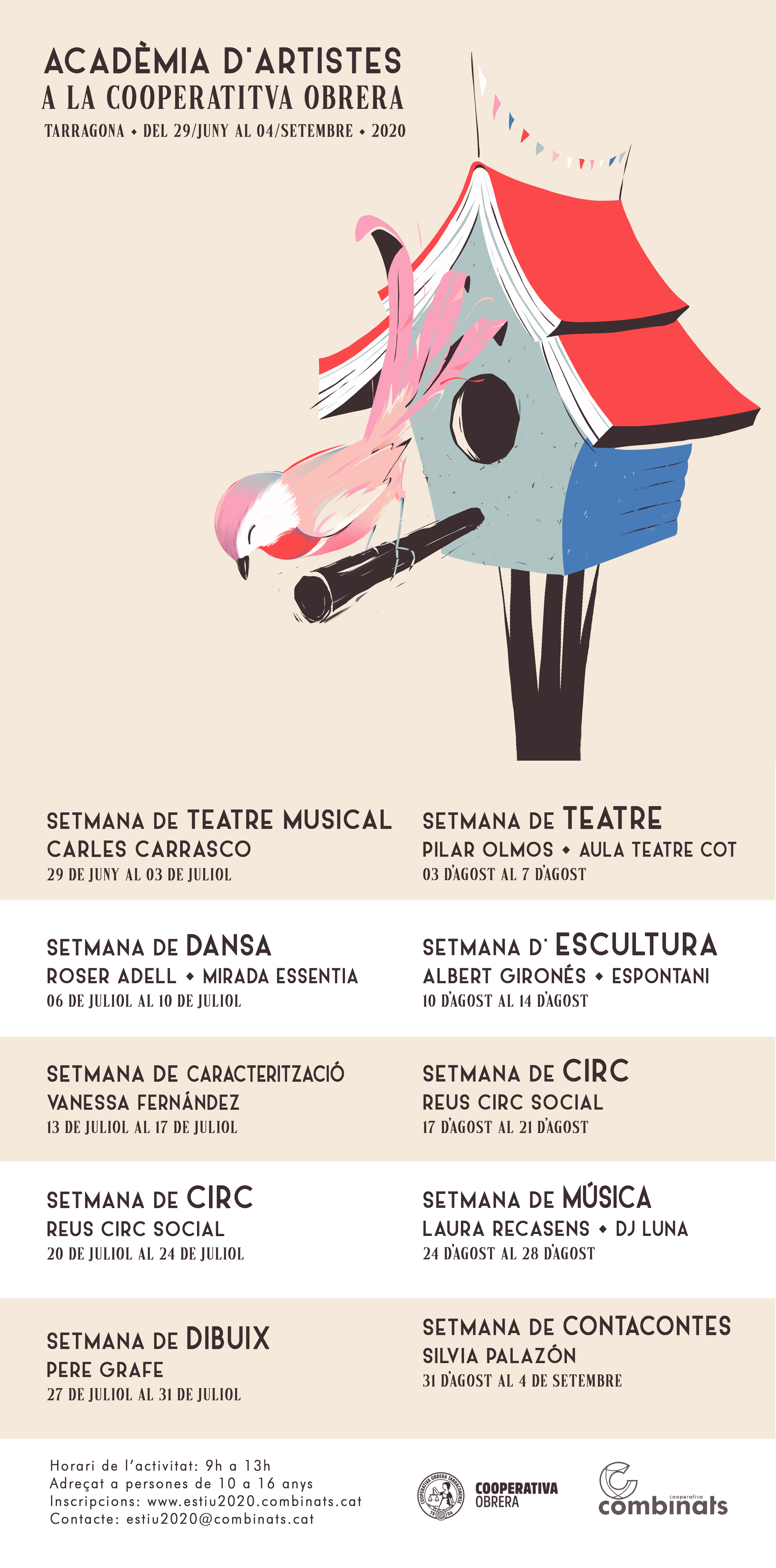 Aquest estiu acollirem a casa nostra l’Acadèmia d’Artistes. Un casal d’estiu per infants i adolescents d’entre 10 i 16 anys on artistes del Camp de Tarragona ens acompanyaran en una experiència educativa i artística mai vista a Tarragona!