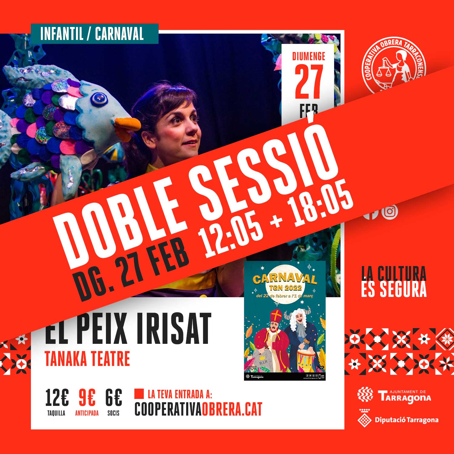 El diumenge 27 FEB, en el marc de Carnaval, Tanaka Teatre ens convida a descobrir ‘El Peix Irisat’, un clàssic dels contes il·lustrats de Marcus Pfister. El Peix Irisat és l’animal més bonic de tot l’oceà, però es troba molt sol. Per què els altres peixos no volen jugar amb ell? Aixi comencen les aventures submarines protagonitzades per un peix d’escates brillants i un munt d’amics com l’estrella de mar rondinaire, el savi pop òctopus, el peix llanterna detectiu, les meduses dansaires, el calamar curt de vista o la petxina flamenca. Junts descobriran la importància de compartir, de ser valents i ajudar els altres.
