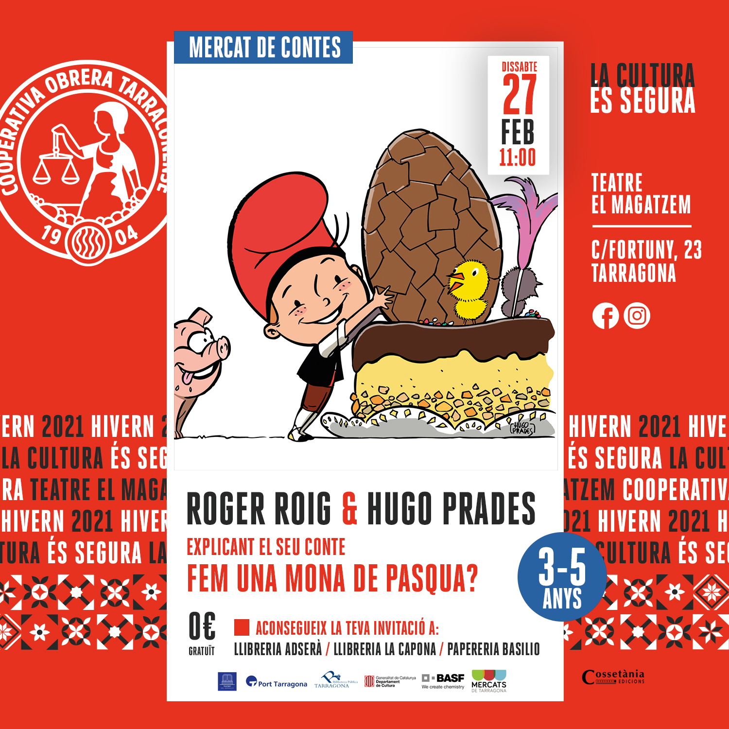 Els autors Roger Roig i l’il·lustrador Hugo Prades explicaran el conte «Fem una mona de Pasqua?» Activitat adreçada a infants de 3 a 5 anys. Aforament limitat i Gratuït.