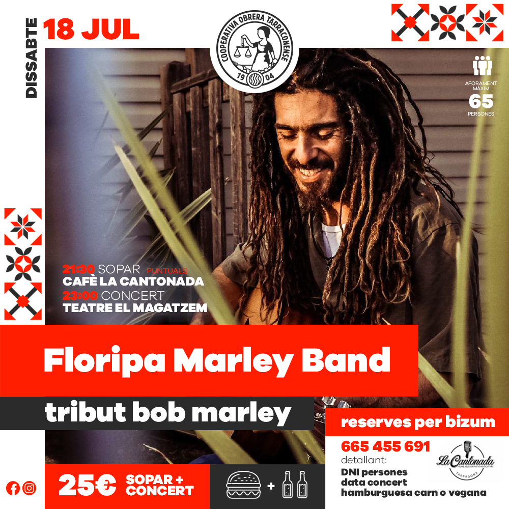 Aquest dissabte 18 JUL vetllada amb les millors hamburgueses de La Cantonada i el reggae de Bob Marley de la mà de Floripa Marley Band al Teatre el Magatzem. Aforament reduït, no t’empanis i RESERVA JA!