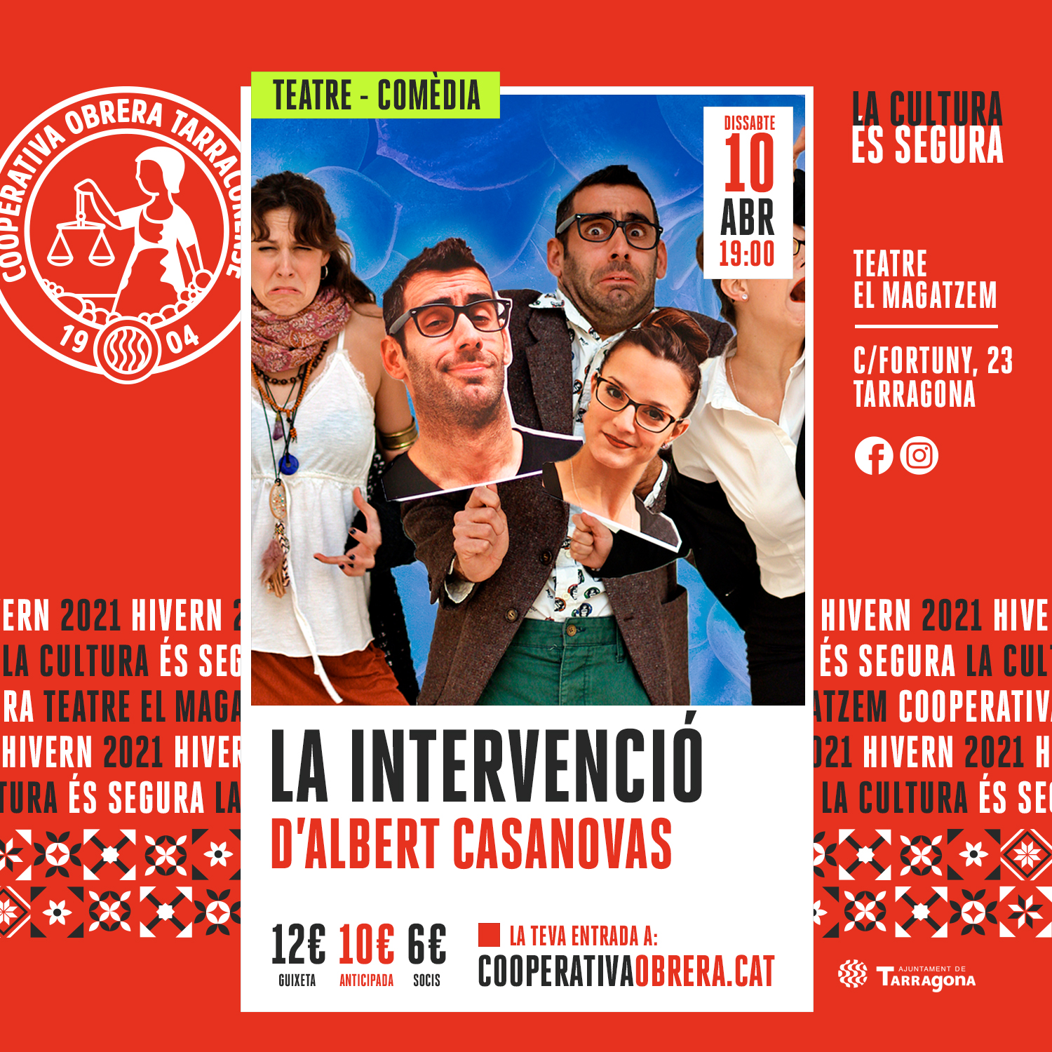 El 10 ABR tractarem un dels mals que més afecta la nostra societat, la hipocresia. La Intervenció és una comèdia satírica en un sol acte que a través de la parodia, el sarcasme i la hipèrbole retrata les hipocresies de les persones que s’encaparren en alliçonar i jutjar els altres quan en són els menys indicats.